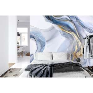 Stylowa fototapeta „Abstract Blue Art with Gray And Gold” o wymiarach 90×60 cm na flizelinie. Ekologiczny druk HP Latex, łatwy montaż, odporna i trwała. Idealna do salonu, sypialni lub biura. Etsy+8