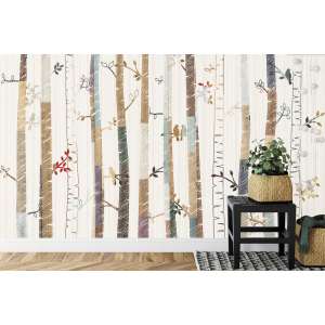 Wprowadź do dziecięcego pokoju atmosferę magicznego lasu! Ta wyjątkowa fototapeta przedstawia subtelny rysunek pni drzew, gałązek i ptaków, wykonany w stylu przypominającym szkic kredką. Jasna, stonowana kolorystyka sprawia, że tapeta jest zarówno tajemnicza, jak i pozytywna – idealna do stworzenia przytulnej i inspirującej przestrzeni.