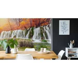 Fototapeta Jesienny Wodospad FT567 wprowadza do wnętrza spokój i naturalne piękno dzięki malowniczemu krajobrazowi jesiennego wodospadu.