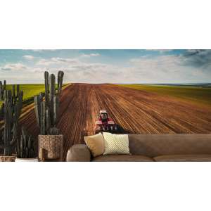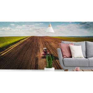 Fototapeta Widok z lotu ptaka na traktor na polu FT-4486-VESK