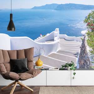 Szukasz sposobu na stylowe wnętrze inspirowane Grecją, Morzem Śródziemnym lub wakacyjnymi pejzażami? Ta fototapeta doskonale komponuje się z jasnymi aranżacjami, minimalistycznym wystrojem oraz naturalnymi dodatkami. Wybór idealny dla miłośników podróży, nadmorskich krajobrazów i spokojnej estetyki.