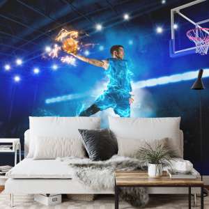 Fototapeta Płonący Koszykarz to idealna dekoracja dla miłośników koszykówki i sportowych emocji. Przedstawia dynamiczną scenę zawodnika w ogniu rywalizacji, oddając ducha gry i determinację sportowca. Wykonanie gwarantuje trwałość, łatwy montaż i wysoką jakość druku. Doskonała do pokoju młodzieżowego, siłowni czy przestrzeni kibica – wprowadza do wnętrza energię i pasję koszykarskich rozgrywek.