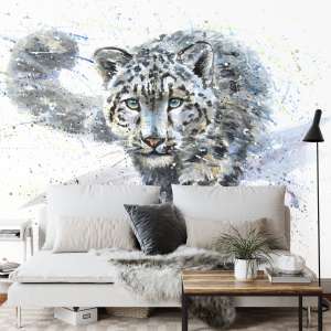 Fototapeta Lampart Śnieżny FT511 to dekoracja przedstawiająca majestatycznego lamparta śnieżnego w zimowej scenerii, idealna do wnętrz inspirowanych naturą.