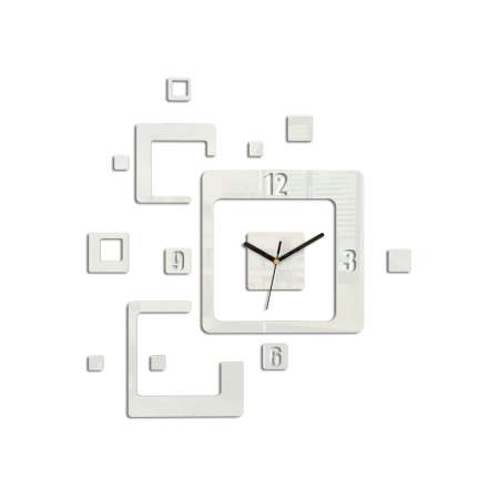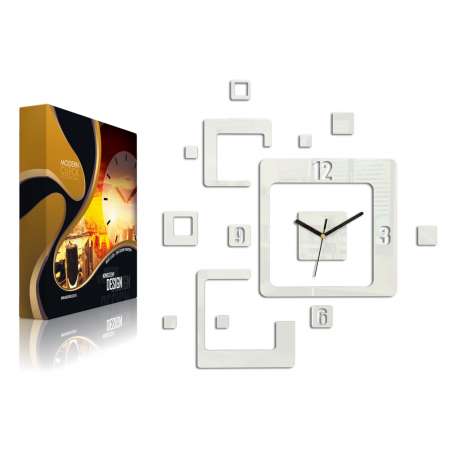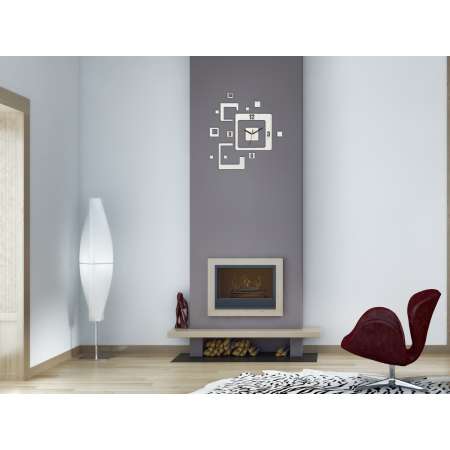 Zegar Trio to nie tylko zwykły zegar ścienny, to cała zegarowa kompozycja składająca się z jednej dużej tarczy o czarnym jak heban połysku, ze srebrnymi wskazówkami. Tarczę zegara okalają dwa kwadraty różnej wielkości oraz kilka mniejszych, tworząc prawdziwie designerski układ w nowoczesnym stylu.