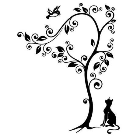Naklejka dekoracyjna TX 87, TX87, drzewo, kot, ptaszek