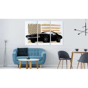 Obraz wieloczęściowy Amerykański muscle car na tle flagi USA LBS-3367-C3X1-1