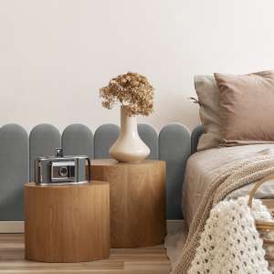 Nasze panele tapicerowane wykonane są z płyty wiórowej sosnowej o grubości 8 mm, z antyalergiczną pianką tapicerską, a materiał welurowy, z którego zostały wykonane, jest odporny na promieniowanie UV.
