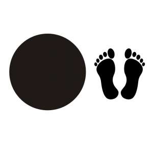 Szablon składa się z kółka o średnicy 30cm, szablonu w kształcie stóp o wysokości 20cm,