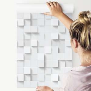 Tapeta Biała Nowoczesna Mozaika - Efekt 3D Flizelina 0.53 x 10 m TR-70-VER-53