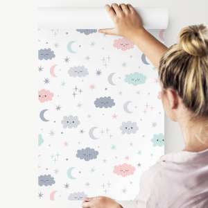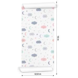 Tapeta Dla Dzieci - Gwiazdki, Księżyce I Wesołe Chmurki Flizelina 0.53 x 10 m TR-602-VER-53