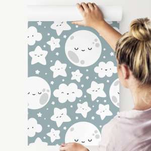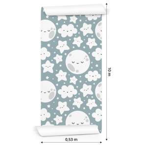 Tapeta Dla Dzieci - Szczęśliwe Gwiazdki, Chmurki I Księżyce Flizelina 0.53 x 10 m TR-680-VER-53