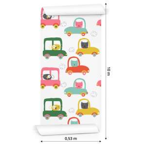 Tapeta Dla Dzieci - Zabawne Zwierzątka I Samochodziki Flizelina 0.53 x 10 m TR-383-VER-53