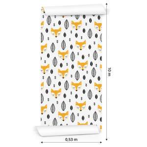 Tapeta Dla Dzieci - Śpiące Liski I Czarno - Białe Liście Flizelina 0.53 x 10 m TR-563-VER-53