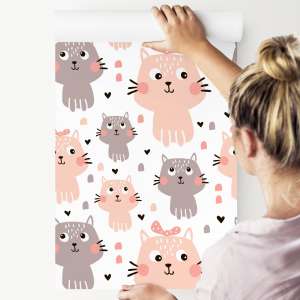 Tapeta Dla Dzieci - Śliczne Pastelowe Kotki Flizelina 0.53 x 10 m TR-664-VER-53