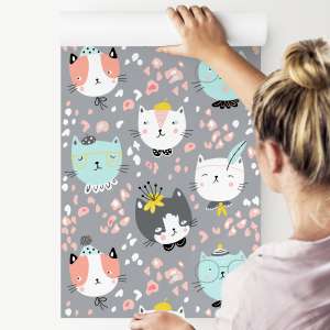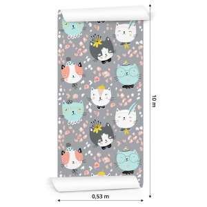 Tapeta Dla Dzieci - Rozmarzone Kolorowe Kotki Flizelina 0.53 x 10 m TR-781-VER-53
