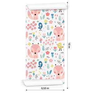 Tapeta Dla Dzieci - Wesołe Liski I Ptaszki Flizelina 0.53 x 10 m TR-887-VER-53