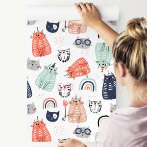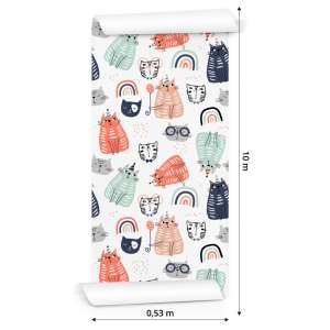 Tapeta Dla Dzieci - Kotki I Tęcza W Stylu Skandynawskim Flizelina 0.53 x 10 m TR-892-VER-53
